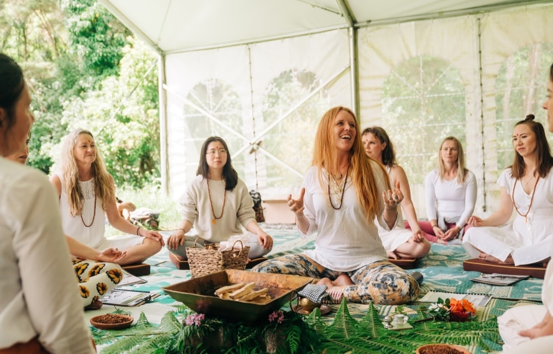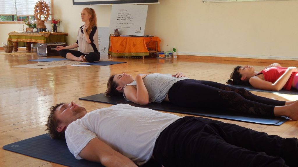 In 2020 I took over from the Programme Director and started managing the school. I laid the focus on course development and curriculum writing for their advanced teacher trainings in Yoga Nidra and Tantrik Hatha Yoga. In close collaboration with Sannayasi Pragyadhara and Swami Karma Karuna and other faculty many successful teacher training courses were held at Kawai Purapura Retreat Centre. I broadened my spectrum of teaching areas on the 200 hour training and became part of advanced training modules by sharing Mantra & Kirtan. Guest teaching slots at Anahata Yoga Retreat with Yin Culture followed. Simultaneously I started teaching online for mental health support and later as Yoga Coach for TaskHuman.